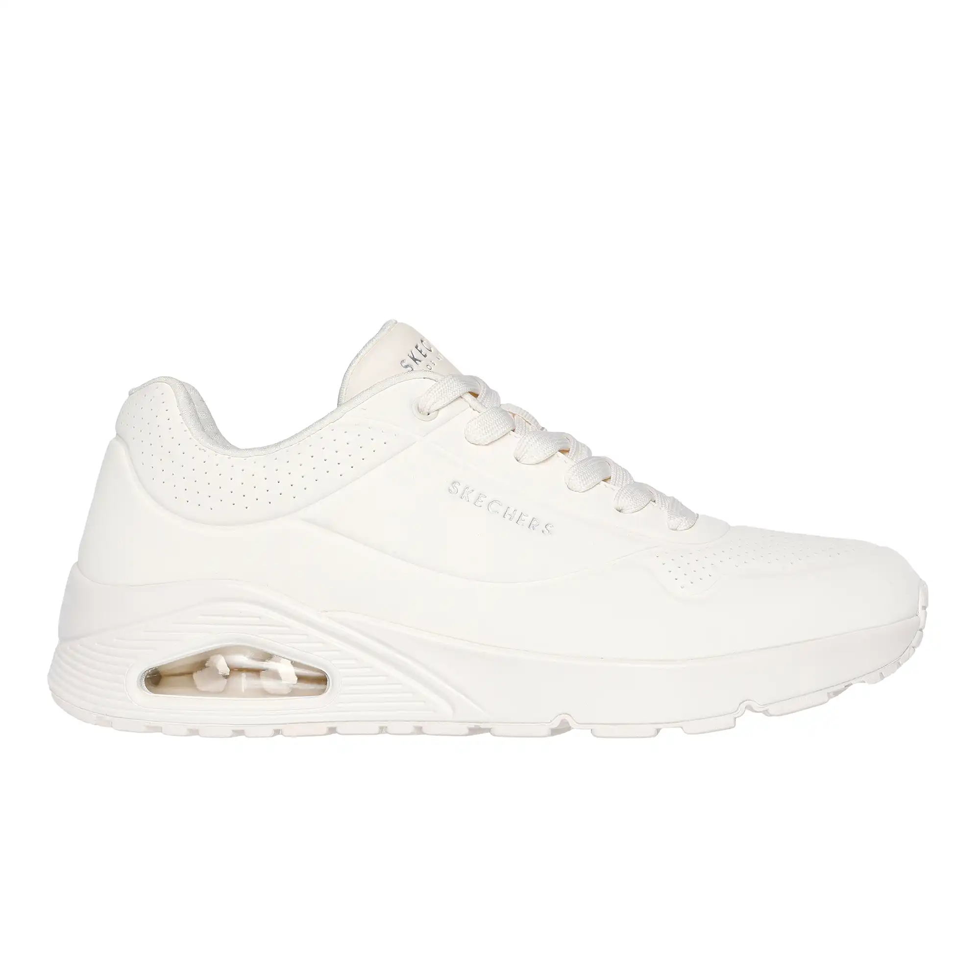 Le confort classique à coussin d’air rencontre une nouvelle mise à jour dans la chaussure Skechers Street™ Street Uno – Stand on Air. Cette sneaker tendance à lacets est dotée d’une tige synthétique perforée lisse avec une semelle intérieure Air-Cooled Memory Foam® et une semelle intermédiaire à coussin d’air visible Skech-Air®.